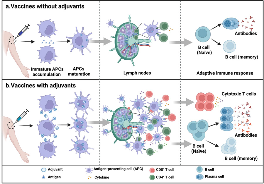 [1]Zhao T, Cai Y, Jiang Y, He X, Wei Y, Yu Y, Tian X. Vaccine adjuvants: mechanisms and platforms. Signal Transduct Target Ther. 2023 Jul 19;8(1):283. doi: 10.1038/s41392-023-01557-7. PMID: 37468460; PMCID: PMC10356842.