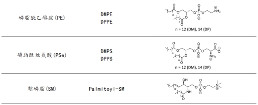 ① 脂質(zhì)體的種類,如常用的磷脂酰乙醇胺、膽固醇和二酰甘油, 脂質(zhì)的性質(zhì)如脂肪鏈長度與飽和度;