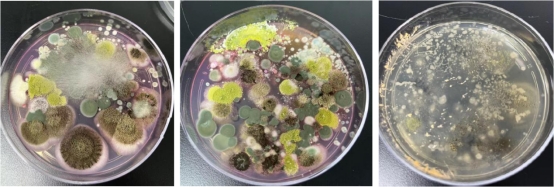 通過KroVin?500等系列工作濃度、接種到易染實驗室及倉庫等環境試驗菌的培養皿,在一定時間培養過程中,隨著各抑菌劑從原點向周圍的輻射,會有圓形區域無法長出菌苔,從而顯示其抑菌作用。實驗通過抑菌圈及直徑大小判斷其抑菌能力。