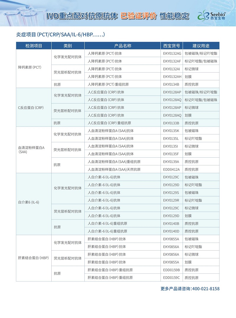 西寶生物IVD重點評估驗證配對項目,已驗證評價,性能穩(wěn)定,更多產(chǎn)品服務(wù)請咨詢:400-021-8158。