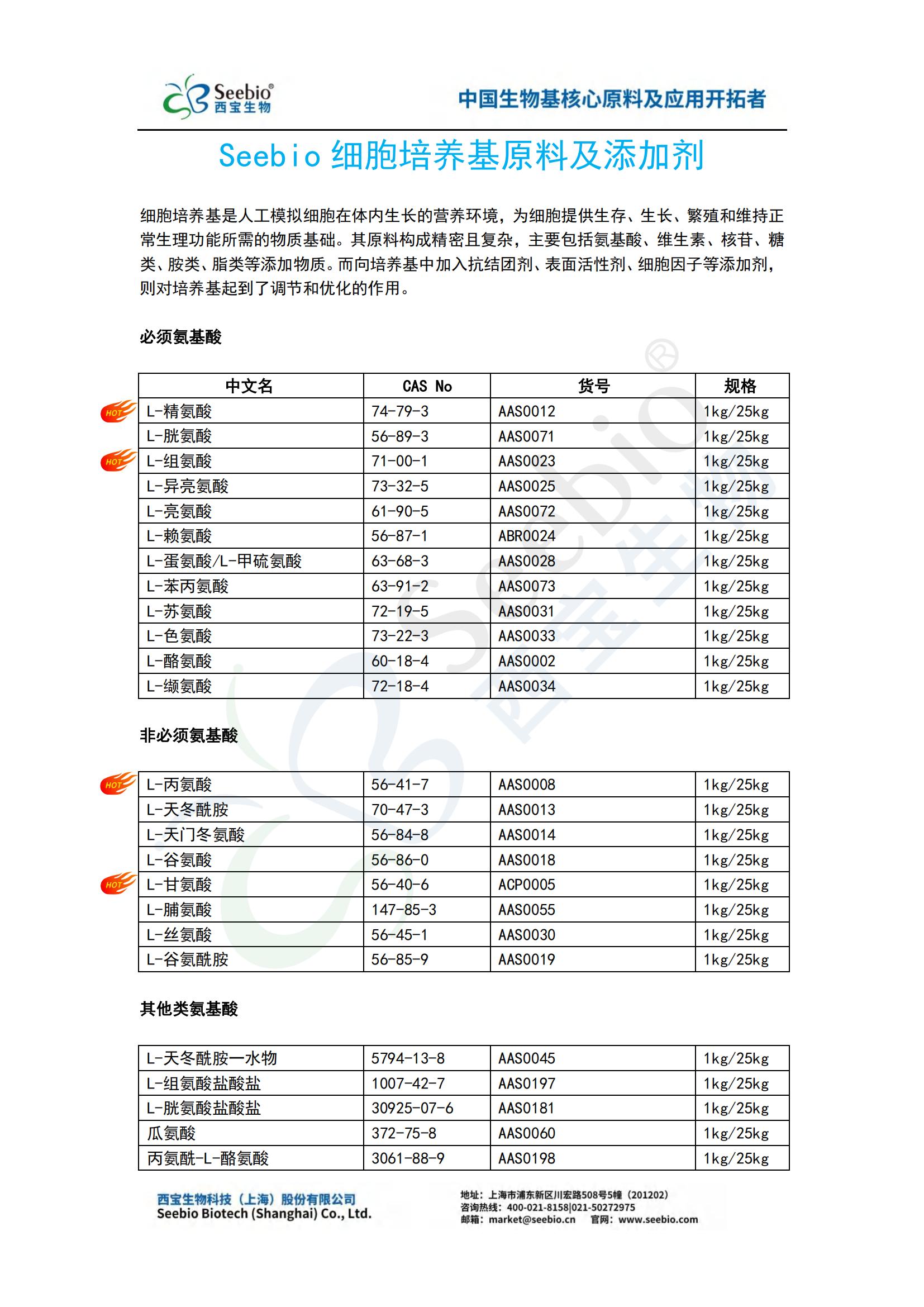 Seebio 細胞培養(yǎng)基原料及添加劑
