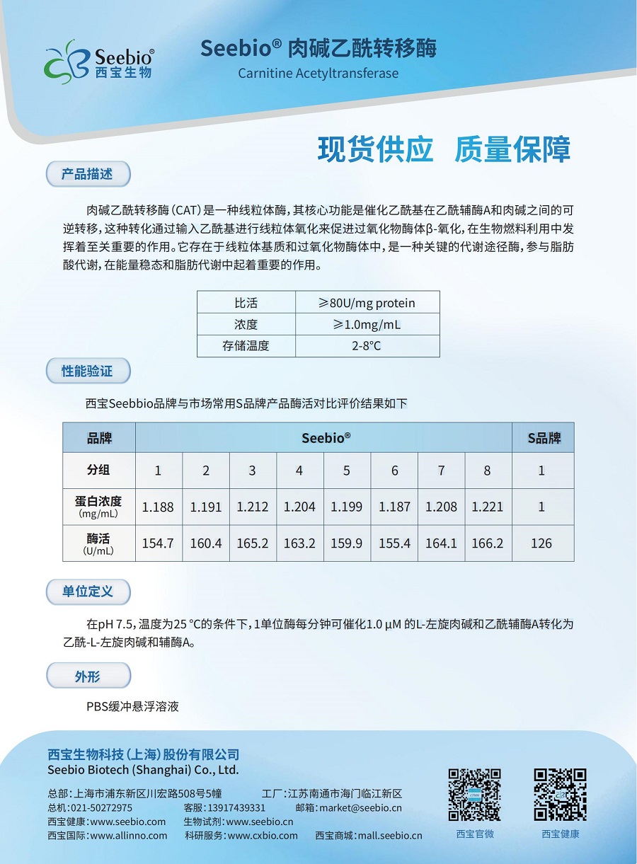 肉堿乙酰轉(zhuǎn)移酶(CAT)是一種線粒體酶,其核心功能是催化乙酰基在乙酰輔酶A和肉堿之間的可逆轉(zhuǎn)移,這種轉(zhuǎn)化通過輸入乙酰基進行線粒體氧化來促進過氧化物酶體β-氧化,在生物燃料利用中發(fā)揮著至關(guān)重要的作用。它存在于線粒體基質(zhì)和過氧化物酶體中,是一種關(guān)鍵的代謝途徑酶,參與脂肪酸代謝,在能量穩(wěn)態(tài)和脂肪代謝中起著重要的作用。