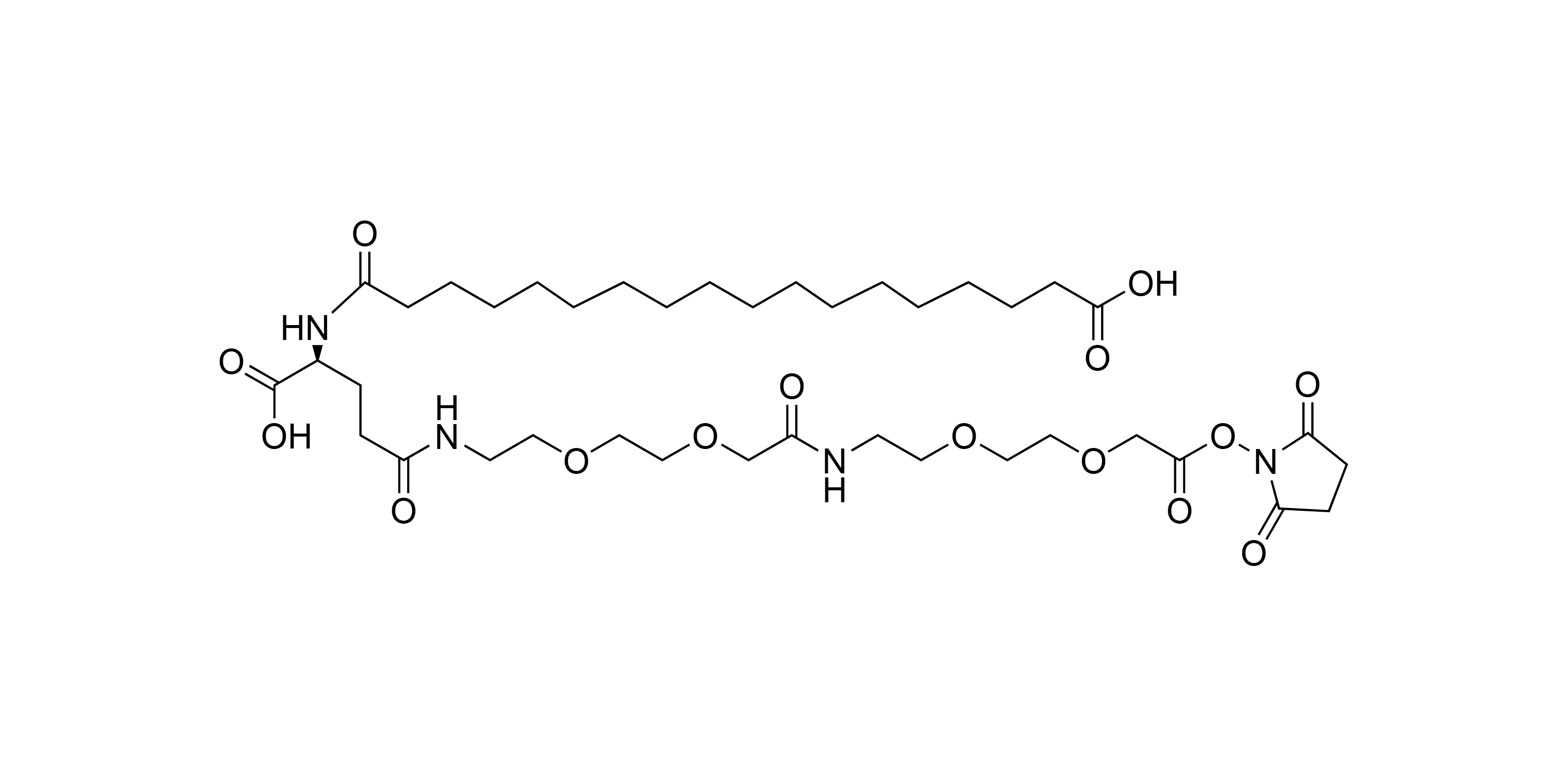 - 別名:1169630-40-3,18-[[((1S)-1-羧基-4-[2-[2-[2-[2-[2-[2-[2,5-二氧雜吡咯烷-1-基)氧]-2-氧-乙氧基]乙氧基]乙氨基]-2-氧代乙氧基]乙氧基]乙氨基]-4-氧代丁基]氨基]-18-氧代十八烷酸;十八烷二酸-谷氨酸-AEEA-AEEA-OSU;索瑪魯肽側鏈-OSU裂解體