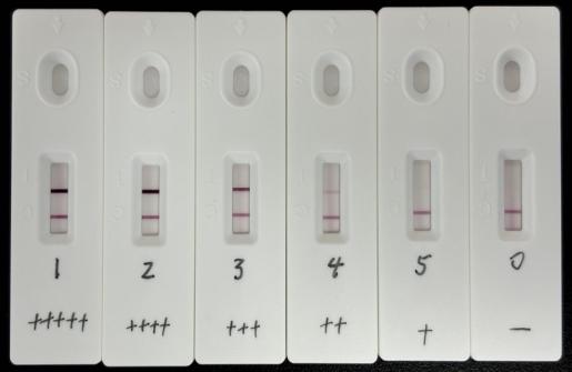 2.2.1 抗體配對組合2:便隱血(FOB)單抗(貨號:EKY0069H)標記彩色乳膠+便隱血(FOB)單抗(貨號:EKY0069G)劃膜;