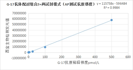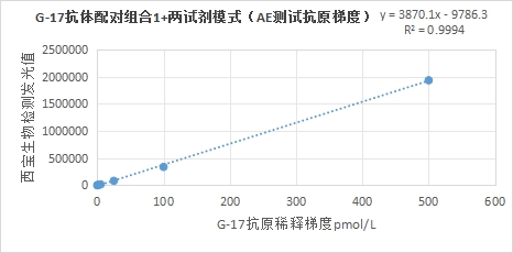 針對胃泌素17(G-17)的檢測,西寶生物推出4種單克隆抗體和1種抗原,適合化學發光(AE/AP)和熒光層析平臺。具體性能如下
