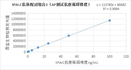 組合3:Anti tPAI.C antibody(貨號:EKY1204C)包被羧基磁珠+Anti tPAI.C antibody(貨號:EKY1205C)標記堿性磷酸酶;